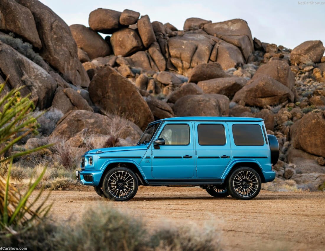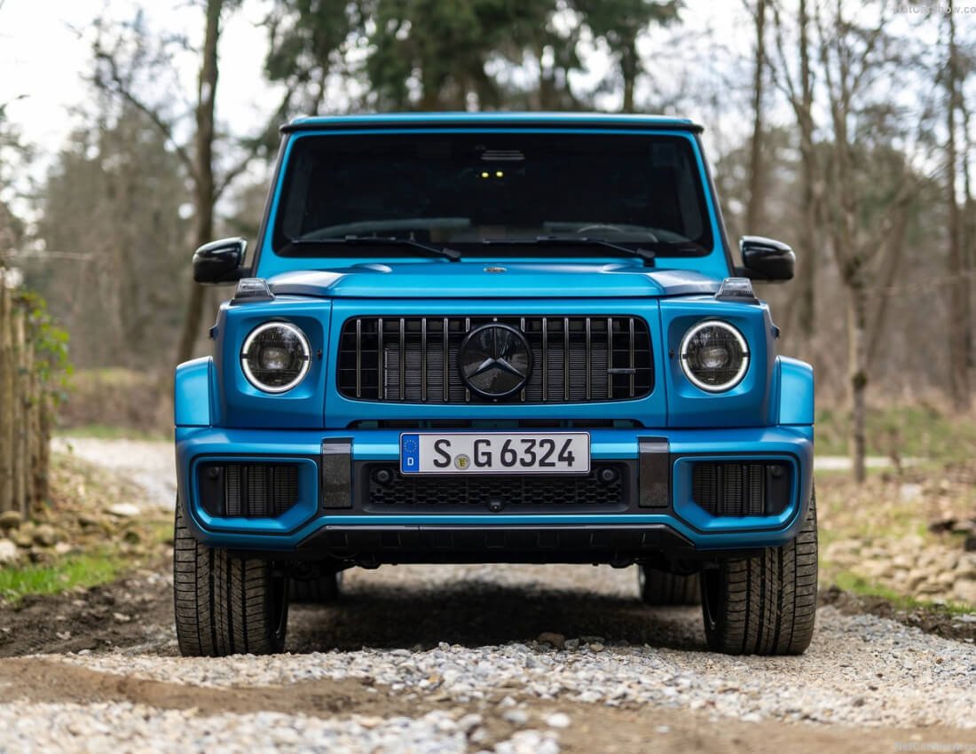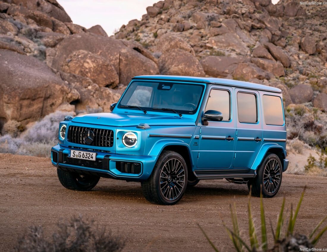 - Iconic G-Class silhouette with modern AMG styling: flared wheel arches, aggressive mesh grille, revised LED headlights for 2025.